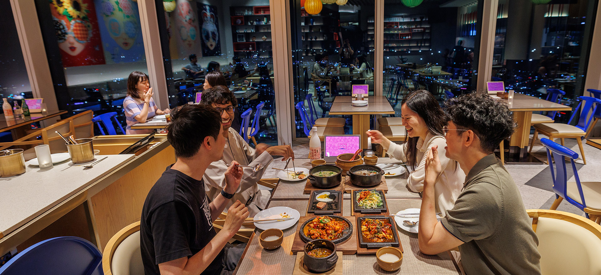 “Pocha,” short for “Pojangmacha” or street tent, is a modern version of street foodwell-loved by locals. While enjoying your favorite drink, don’t miss out on takingone of the best photos of the beautiful Jeju sky tinged in orange. Whether it’ssoju, beer, or rice wine with a plate of fried chicken, oden soup, or spicy octopus,late-night drinking gets only better.